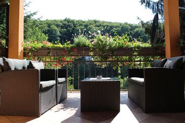Haus bietet Platz für 6 Gäste. Die Betten sind in Schlafzimmern, die es 1 gibt, und in Wohnzimmer, innerhalb einer Gesamtfläche von 120m2, angeordnet. Die Gäste haben eine eigene Terrasse zur Verfügung, auf der sie in warmen Sommernächten genießen können. Für vollen Genuss und Entspannung gibt es einen privaten Grill für Gäste dieser Unterkunft.
