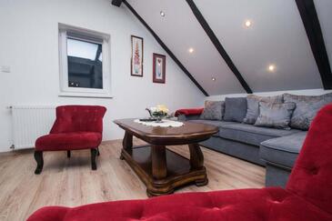 Ferienwohnung bietet Platz für 6 Gäste. Die Betten sind in Schlafzimmern, die es 2 gibt, und in Wohnzimmer, innerhalb einer Gesamtfläche von 90m2, angeordnet. Für vollen Genuss und Entspannung gibt es einen privaten Grill für Gäste dieser Unterkunft. In der Unterkunftseinheit besteht die Möglichkeit des Mitbringens von Haustieren gegen Aufpreis. Die reservierte Unterkunftseinheit hat keinen Balkon und keine Terrasse.