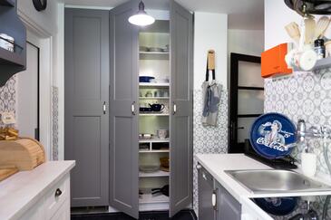 Haus bietet Platz für 6 Gäste. Die Betten sind in Schlafzimmern, die es 3 gibt, innerhalb einer Gesamtfläche von 161m2, angeordnet. Die Gäste haben eine eigene Terrasse zur Verfügung, auf der sie in warmen Sommernächten genießen können. Für vollen Genuss und Entspannung gibt es einen privaten Grill für Gäste dieser Unterkunft.