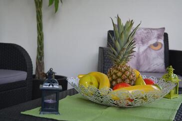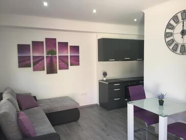 Ferienwohnung bietet Platz für 4 Gäste. Die Betten sind in Schlafzimmern, die es 1 gibt, und in Wohnzimmer, innerhalb einer Gesamtfläche von 47m2, angeordnet. Die Gäste haben eine eigene Terrasse zur Verfügung, auf der sie in warmen Sommernächten genießen können. Es ist erlaubt, Speisen auf dem Gemeinschafts-Grill vorzubereiten. In der Unterkunftseinheit besteht die Möglichkeit des Mitbringens von Haustieren, und die Dienstleistung ist im Preis der Unterkunft enthalten.