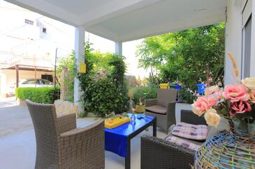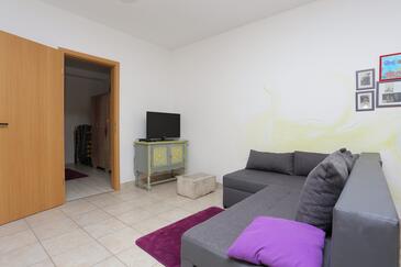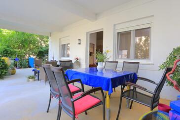 Ferienwohnung bietet Platz für 4 Gäste. Die Betten sind in Schlafzimmern, die es 1 gibt, und in Wohnzimmer, innerhalb einer Gesamtfläche von 33m2, angeordnet. Die Gäste haben eine eigene Terrasse zur Verfügung, auf der sie in warmen Sommernächten genießen können. Das Apartment bietet Meerblick. Es ist erlaubt, Speisen auf dem Gemeinschafts-Grill vorzubereiten.
