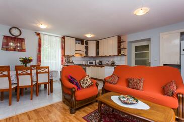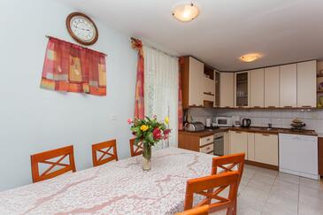 Ferienwohnung bietet Platz für 4 Gäste. Die Betten sind in Schlafzimmern, die es 3 gibt, innerhalb einer Gesamtfläche von 70m2, angeordnet. In der Unterkunftseinheit besteht die Möglichkeit des Mitbringens von Haustieren gegen Aufpreis. Die reservierte Unterkunftseinheit hat keinen Balkon und keine Terrasse.