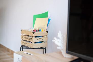 Ferienwohnung bietet Platz für 6 Gäste. Die Betten sind in Schlafzimmern, die es 2 gibt, und in Wohnzimmer, innerhalb einer Gesamtfläche von 60m2, angeordnet. Die Gäste haben einen eigenen Balkon zur Verfügung, auf der sie in warmen Sommernächten genießen können. Es ist erlaubt, Speisen auf dem Gemeinschafts-Grill vorzubereiten.