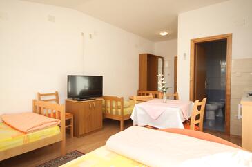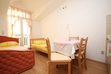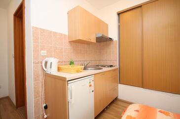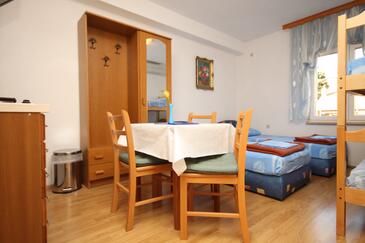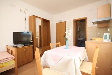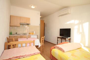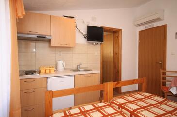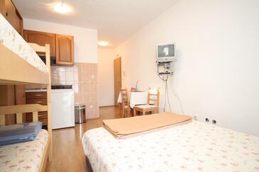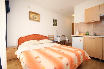 Studio bietet Platz für 2 Gäste. Die Betten sind in Schlafzimmern, die es 1 gibt, innerhalb einer Gesamtfläche von 16m2, angeordnet. Die Gäste haben eine eigene Terrasse zur Verfügung, auf der sie in warmen Sommernächten genießen können. Es ist erlaubt, Speisen auf dem Gemeinschafts-Grill vorzubereiten.