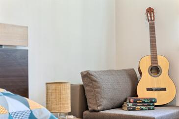 Ferienwohnung bietet Platz für 4 Gäste. Die Betten sind in Schlafzimmern, die es 2 gibt, innerhalb einer Gesamtfläche von 56m2, angeordnet. Die Gäste haben einen eigenen Balkon zur Verfügung, auf der sie in warmen Sommernächten genießen können. Es ist erlaubt, Speisen auf dem Gemeinschafts-Grill vorzubereiten. Während ihres Aufenthalts können Gäste das gemeinsam zur Nutzung stehende Schwimmbad benutzen.