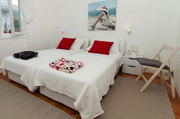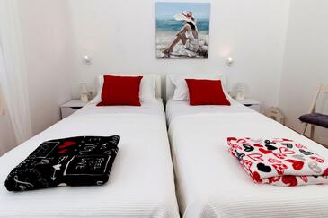 Ferienwohnung bietet Platz für 8 Gäste. Die Betten sind in Schlafzimmern, die es 3 gibt, und in Wohnzimmer, innerhalb einer Gesamtfläche von 112m2, angeordnet. Die Gäste haben eine eigene Terrasse zur Verfügung, auf der sie in warmen Sommernächten genießen können. Es ist erlaubt, Speisen auf dem Gemeinschafts-Grill vorzubereiten.