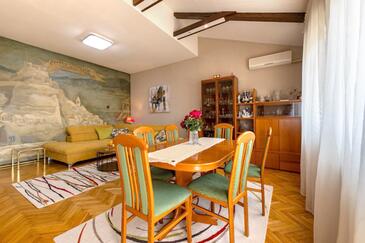 Ferienwohnung bietet Platz für 5 Gäste. Die Betten sind in Schlafzimmern, die es 2 gibt, und in Wohnzimmer, innerhalb einer Gesamtfläche von 85m2, angeordnet. Die Gäste haben eine eigene Terrasse zur Verfügung, auf der sie in warmen Sommernächten genießen können. Das Apartment bietet Meerblick. Es ist erlaubt, Speisen auf dem Gemeinschafts-Grill vorzubereiten.