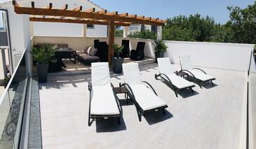 Haus bietet Platz für 8 Gäste. Die Betten sind in Schlafzimmern, die es 4 gibt, innerhalb einer Gesamtfläche von 158m2, angeordnet. Die Gäste haben eine eigene Terrasse zur Verfügung, auf der sie in warmen Sommernächten genießen können. Das Haus bietet Meerblick. Für vollen Genuss und Entspannung gibt es einen privaten Grill für Gäste dieser Unterkunft. Während ihres Aufenthalts können sich Gäste im privaten Schwimmbad entspannen.