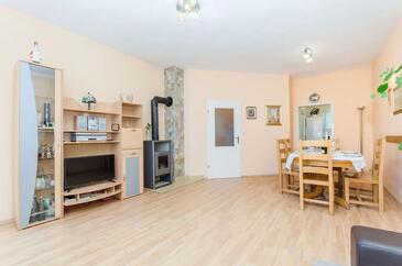 Ferienwohnung bietet Platz für 6 Gäste. Die Betten sind in Schlafzimmern, die es 2 gibt, und in Wohnzimmer, innerhalb einer Gesamtfläche von 56m2, angeordnet. Die Gäste haben eine eigene Terrasse zur Verfügung, auf der sie in warmen Sommernächten genießen können. Für vollen Genuss und Entspannung gibt es einen privaten Grill für Gäste dieser Unterkunft.