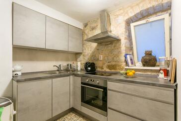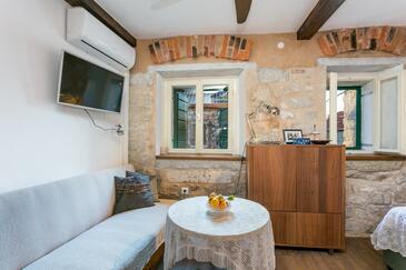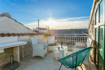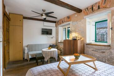 Haus bietet Platz für 6 Gäste. Die Betten sind in Schlafzimmern, die es 2 gibt, und in Esszimmer, innerhalb einer Gesamtfläche von 78m2, angeordnet. Die Gäste haben eine eigene Terrasse zur Verfügung, auf der sie in warmen Sommernächten genießen können. Räume der gebuchten Unterkunftseinheit werden nicht in eine Ganze verbunden. Unterkunftseinheit hat Räume, die von dem Rest der Einheit abgetrennt werden.