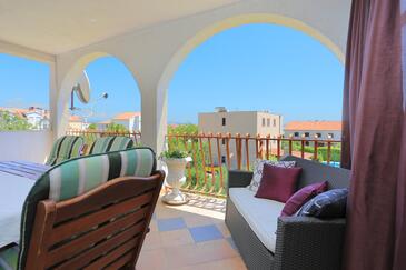 Ferienwohnung bietet Platz für 6 Gäste. Die Betten sind in Schlafzimmern, die es 3 gibt, innerhalb einer Gesamtfläche von 106m2, angeordnet. Die Gäste haben eine eigene Terrasse zur Verfügung, auf der sie in warmen Sommernächten genießen können. Für vollen Genuss und Entspannung gibt es einen privaten Grill für Gäste dieser Unterkunft.