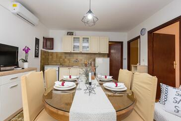 Ferienwohnung bietet Platz für 4 Gäste. Die Betten sind in Schlafzimmern, die es 2 gibt, innerhalb einer Gesamtfläche von 44m2, angeordnet. Die Gäste haben eine eigene Terrasse zur Verfügung, auf der sie in warmen Sommernächten genießen können. Für vollen Genuss und Entspannung gibt es einen privaten Grill für Gäste dieser Unterkunft.