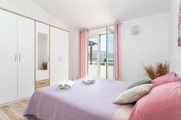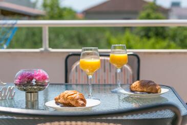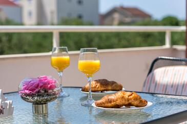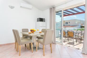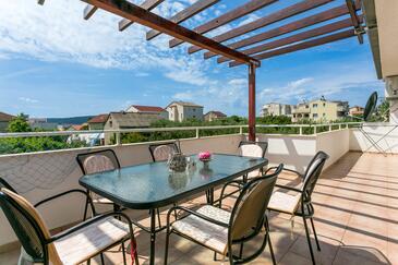 Ferienwohnung bietet Platz für 7 Gäste. Die Betten sind in Schlafzimmern, die es 3 gibt, und in Wohnzimmer, innerhalb einer Gesamtfläche von 86m2, angeordnet. Die Gäste haben eine eigene Terrasse zur Verfügung, auf der sie in warmen Sommernächten genießen können. Das Apartment bietet Meerblick. Es ist erlaubt, Speisen auf dem Gemeinschafts-Grill vorzubereiten.
