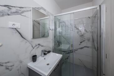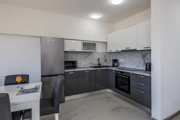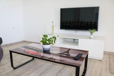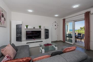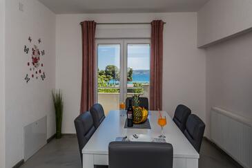 Ferienwohnung bietet Platz für 8 Gäste. Die Betten sind in Schlafzimmern, die es 3 gibt, und in Wohnzimmer, innerhalb einer Gesamtfläche von 83m2, angeordnet. Die Gäste haben eine eigene Terrasse zur Verfügung, auf der sie in warmen Sommernächten genießen können. Das Apartment bietet Meerblick. Es ist erlaubt, Speisen auf dem Gemeinschafts-Grill vorzubereiten.
