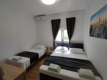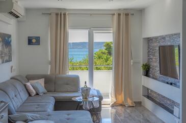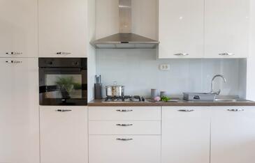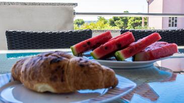 Ferienwohnung bietet Platz für 8 Gäste. Die Betten sind in Schlafzimmern, die es 3 gibt, und in Wohnzimmer, innerhalb einer Gesamtfläche von 100m2, angeordnet. Die Gäste haben eine eigene Terrasse zur Verfügung, auf der sie in warmen Sommernächten genießen können. Das Apartment bietet Meerblick. Es ist erlaubt, Speisen auf dem Gemeinschafts-Grill vorzubereiten.