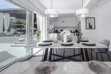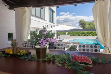 Ferienwohnung bietet Platz für 6 Gäste. Die Betten sind in Schlafzimmern, die es 3 gibt, innerhalb einer Gesamtfläche von 106m2, angeordnet. Die Gäste haben eine eigene Terrasse zur Verfügung, auf der sie in warmen Sommernächten genießen können. Für vollen Genuss und Entspannung gibt es einen privaten Grill für Gäste dieser Unterkunft. Während ihres Aufenthalts können sich Gäste im privaten Schwimmbad entspannen. In der gebuchten Unterkunftseinheit zahlt man am Ort ein Depositum ( der Preis ist an der Internetseite angeführt ).