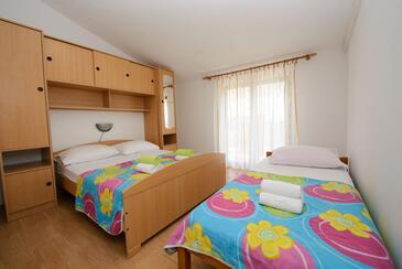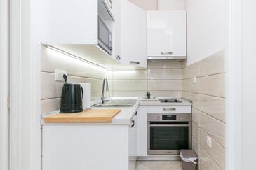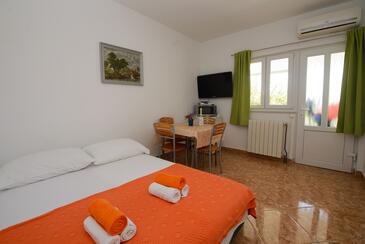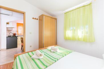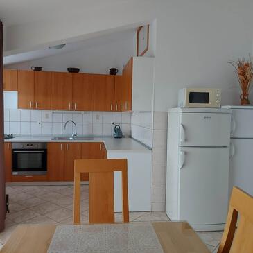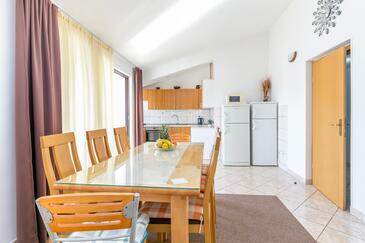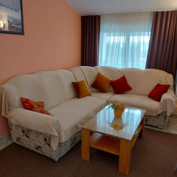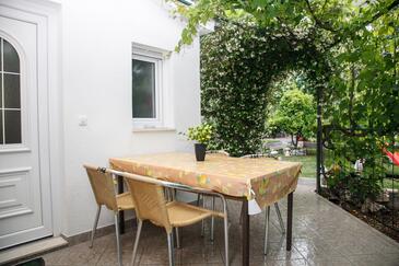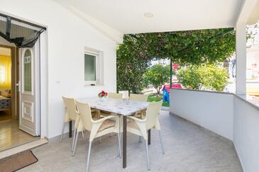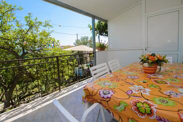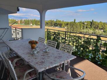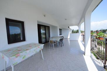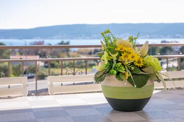Ferienwohnung bietet Platz für 8 Gäste. Die Betten sind in Schlafzimmern, die es 4 gibt, innerhalb einer Gesamtfläche von 107m2, angeordnet. Die Gäste haben eine eigene Terrasse zur Verfügung, auf der sie in warmen Sommernächten genießen können. Das Apartment bietet Meerblick. Es ist erlaubt, Speisen auf dem Gemeinschafts-Grill vorzubereiten.