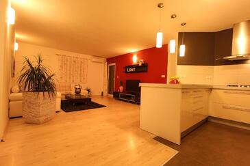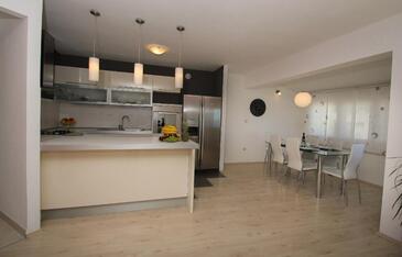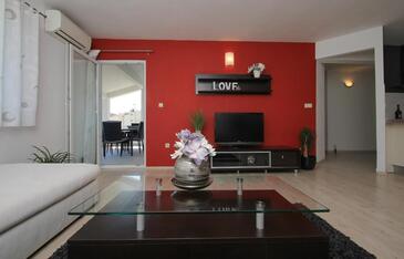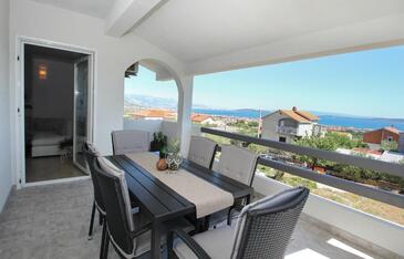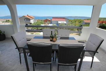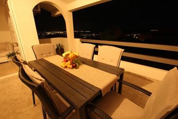 Ferienwohnung bietet Platz für 6 Gäste. Die Betten sind in Schlafzimmern, die es 3 gibt, innerhalb einer Gesamtfläche von 105m2, angeordnet. Die Gäste haben eine eigene Terrasse zur Verfügung, auf der sie in warmen Sommernächten genießen können. Das Apartment bietet Meerblick. Es ist erlaubt, Speisen auf dem Gemeinschafts-Grill vorzubereiten.