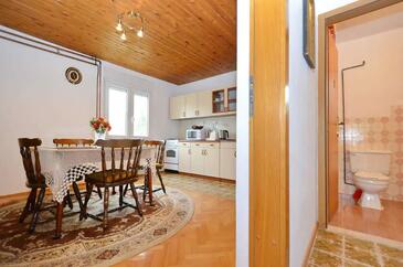 Haus bietet Platz für 6 Gäste. Die Betten sind in Schlafzimmern, die es 3 gibt, innerhalb einer Gesamtfläche von 109m2, angeordnet. Die Gäste haben einen eigenen Balkon zur Verfügung, auf der sie in warmen Sommernächten genießen können. Das Haus bietet Meerblick. Für vollen Genuss und Entspannung gibt es einen privaten Grill für Gäste dieser Unterkunft.