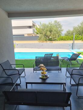 Haus bietet Platz für 10 Gäste. Die Betten sind in Schlafzimmern, die es 5 gibt, innerhalb einer Gesamtfläche von 183m2, angeordnet. Die Gäste haben eine eigene Terrasse zur Verfügung, auf der sie in warmen Sommernächten genießen können. Für vollen Genuss und Entspannung gibt es einen privaten Grill für Gäste dieser Unterkunft. Während ihres Aufenthalts können sich Gäste im privaten Schwimmbad entspannen. In der Unterkunftseinheit besteht die Möglichkeit des Mitbringens von Haustieren gegen Aufpreis.