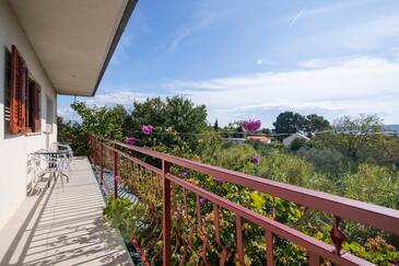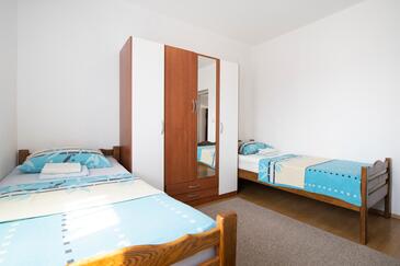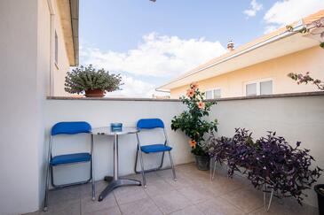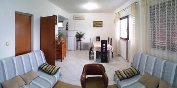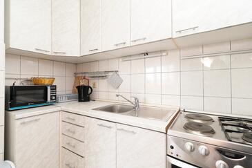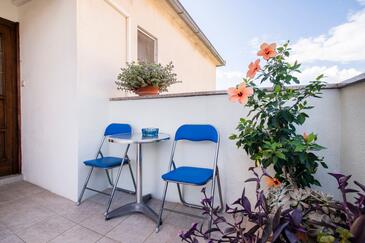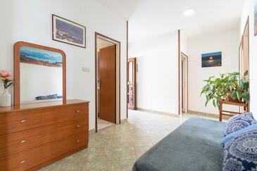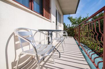 Ferienwohnung bietet Platz für 6 Gäste. Die Betten sind in Schlafzimmern, die es 3 gibt, innerhalb einer Gesamtfläche von 80m2, angeordnet. Die Gäste haben einen eigenen Balkon zur Verfügung, auf der sie in warmen Sommernächten genießen können. Das Apartment bietet Meerblick. Es ist erlaubt, Speisen auf dem Gemeinschafts-Grill vorzubereiten.