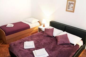 Ferienwohnung bietet Platz für 12 Gäste. Die Betten sind in Schlafzimmern, die es 5 gibt, innerhalb einer Gesamtfläche von 124m2, angeordnet. Die Gäste haben eine eigene Terrasse zur Verfügung, auf der sie in warmen Sommernächten genießen können. Es ist erlaubt, Speisen auf dem Gemeinschafts-Grill vorzubereiten.
