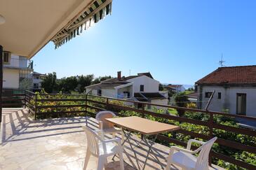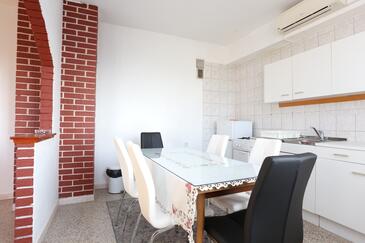 Ferienwohnung bietet Platz für 8 Gäste. Die Betten sind in Schlafzimmern, die es 3 gibt, und in Wohnzimmer, innerhalb einer Gesamtfläche von 82m2, angeordnet. Die Gäste haben einen eigenen Balkon zur Verfügung, auf der sie in warmen Sommernächten genießen können. Das Apartment bietet Meerblick. Es ist erlaubt, Speisen auf dem Gemeinschafts-Grill vorzubereiten. In der Unterkunftseinheit besteht die Möglichkeit des Mitbringens von Haustieren gegen Aufpreis. Eingang in die Unterkunftseinheit ist nicht mit einer Tür von anderen Räumen des Objektes getrennt.