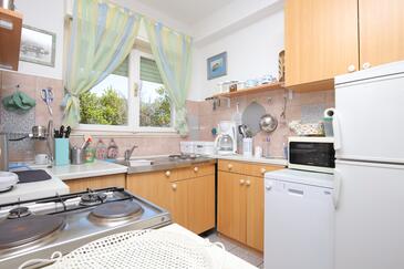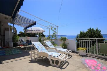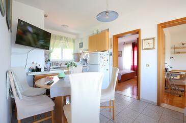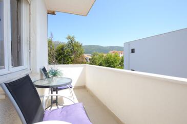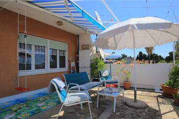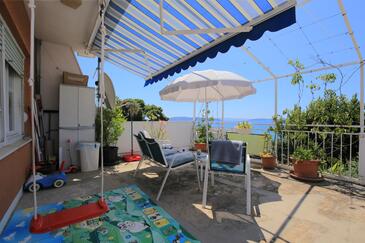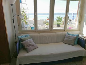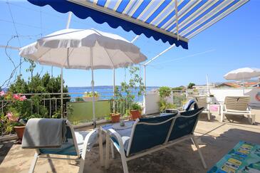 Ferienwohnung bietet Platz für 5 Gäste. Die Betten sind in Schlafzimmern, die es 2 gibt, und in Wohnzimmer, innerhalb einer Gesamtfläche von 48m2, angeordnet. Die Gäste haben eine eigene Terrasse zur Verfügung, auf der sie in warmen Sommernächten genießen können. Das Apartment bietet Meerblick. Es ist erlaubt, Speisen auf dem Gemeinschafts-Grill vorzubereiten. In der Unterkunftseinheit besteht die Möglichkeit des Mitbringens von Haustieren gegen Aufpreis.