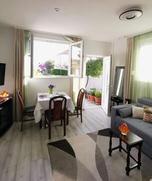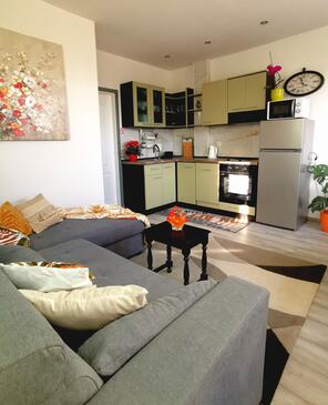Ferienwohnung bietet Platz für 3 Gäste. Die Betten sind in Schlafzimmern, die es 1 gibt, und in Wohnzimmer, innerhalb einer Gesamtfläche von 30m2, angeordnet. Die Gäste haben eine eigene Terrasse zur Verfügung, auf der sie in warmen Sommernächten genießen können. Das Apartment bietet Meerblick. Für vollen Genuss und Entspannung gibt es einen privaten Grill für Gäste dieser Unterkunft. Unterkunftseinheit hat Räume, die von dem Rest der Einheit abgetrennt werden.