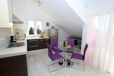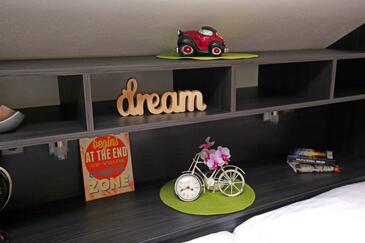 Ferienwohnung bietet Platz für 5 Gäste. Die Betten sind in Schlafzimmern, die es 3 gibt, innerhalb einer Gesamtfläche von 68m2, angeordnet. Die Gäste haben einen eigenen Balkon zur Verfügung, auf der sie in warmen Sommernächten genießen können. Das Apartment bietet Meerblick.