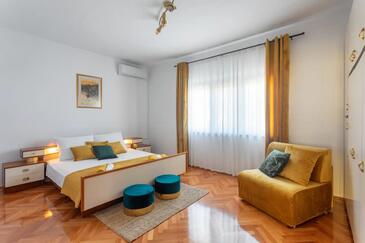 Ferienwohnung bietet Platz für 6 Gäste. Die Betten sind in Schlafzimmern, die es 2 gibt, und in Wohnzimmer, innerhalb einer Gesamtfläche von 82m2, angeordnet. Die Gäste haben einen eigenen Balkon zur Verfügung, auf der sie in warmen Sommernächten genießen können. Das Apartment bietet Meerblick. Während ihres Aufenthalts können sich Gäste im privaten Schwimmbad entspannen.