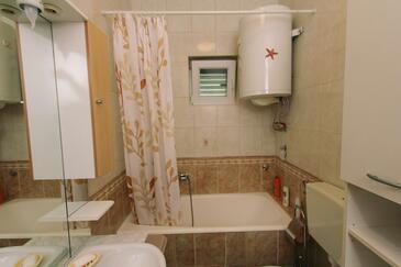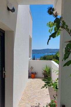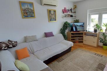 Ferienwohnung bietet Platz für 6 Gäste. Die Betten sind in Schlafzimmern, die es 2 gibt, und in Wohnzimmer, innerhalb einer Gesamtfläche von 75m2, angeordnet. Die Gäste haben eine eigene Terrasse zur Verfügung, auf der sie in warmen Sommernächten genießen können. Das Apartment bietet Meerblick. Es ist erlaubt, Speisen auf dem Gemeinschafts-Grill vorzubereiten.
