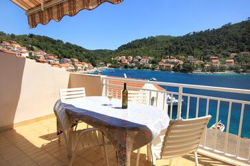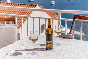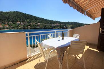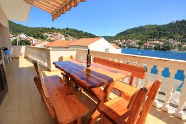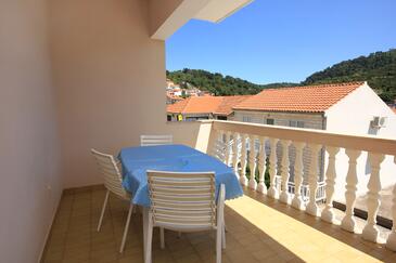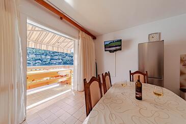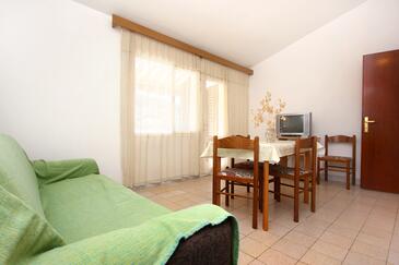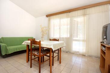 Ferienwohnung bietet Platz für 8 Gäste. Die Betten sind in Schlafzimmern, die es 4 gibt, innerhalb einer Gesamtfläche von 96m2, angeordnet. Die Gäste haben eine eigene Terrasse zur Verfügung, auf der sie in warmen Sommernächten genießen können. Das Apartment bietet Meerblick. Es ist erlaubt, Speisen auf dem Gemeinschafts-Grill vorzubereiten.