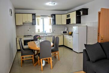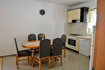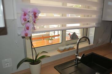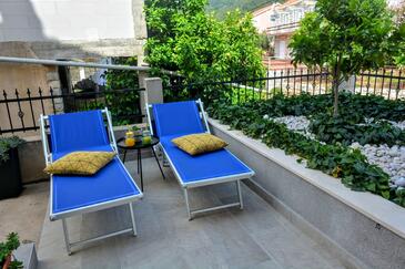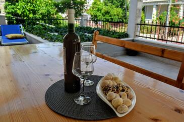 Ferienwohnung bietet Platz für 6 Gäste. Die Betten sind in Schlafzimmern, die es 2 gibt, und in Wohnzimmer, innerhalb einer Gesamtfläche von 74m2, angeordnet. Die Gäste haben eine eigene Terrasse zur Verfügung, auf der sie in warmen Sommernächten genießen können. Es ist erlaubt, Speisen auf dem Gemeinschafts-Grill vorzubereiten.