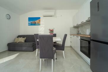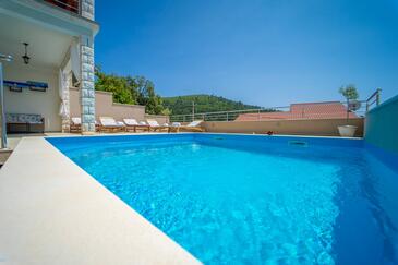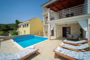 Haus bietet Platz für 12 Gäste. Die Betten sind in Schlafzimmern, die es 5 gibt, und in Wohnzimmer, innerhalb einer Gesamtfläche von 158m2, angeordnet. Die Gäste haben eine eigene Terrasse zur Verfügung, auf der sie in warmen Sommernächten genießen können. Das Haus bietet Meerblick. Für vollen Genuss und Entspannung gibt es einen privaten Grill für Gäste dieser Unterkunft. Während ihres Aufenthalts können sich Gäste im privaten Schwimmbad entspannen. Räume der gebuchten Unterkunftseinheit werden nicht in eine Ganze verbunden.