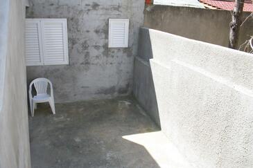 Ferienwohnung bietet Platz für 5 Gäste. Die Betten sind in Schlafzimmern, die es 2 gibt, und in Esszimmer, innerhalb einer Gesamtfläche von 57m2, angeordnet. Die Gäste haben eine eigene Terrasse zur Verfügung, auf der sie in warmen Sommernächten genießen können. Das Apartment bietet Meerblick. Es ist erlaubt, Speisen auf dem Gemeinschafts-Grill vorzubereiten.