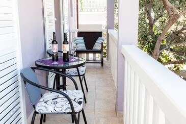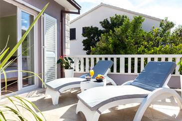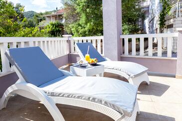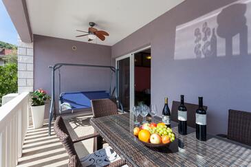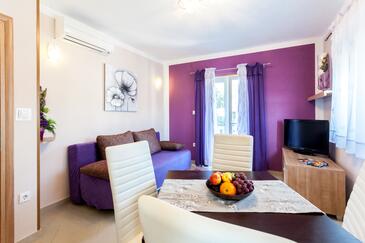Ferienwohnung bietet Platz für 10 Gäste. Die Betten sind in Schlafzimmern, die es 3 gibt, und in Wohnzimmer, innerhalb einer Gesamtfläche von 101m2, angeordnet. Die Gäste haben eine eigene Terrasse zur Verfügung, auf der sie in warmen Sommernächten genießen können. Das Apartment bietet Meerblick. Es ist erlaubt, Speisen auf dem Gemeinschafts-Grill vorzubereiten.
