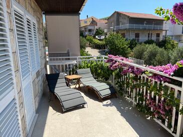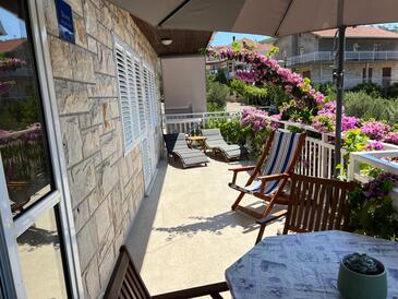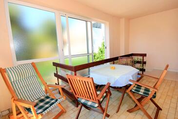 Ferienwohnung bietet Platz für 6 Gäste. Die Betten sind in Schlafzimmern, die es 3 gibt, innerhalb einer Gesamtfläche von 78m2, angeordnet. Die Gäste haben eine eigene Terrasse zur Verfügung, auf der sie in warmen Sommernächten genießen können. Das Apartment bietet Meerblick. Es ist erlaubt, Speisen auf dem Gemeinschafts-Grill vorzubereiten.