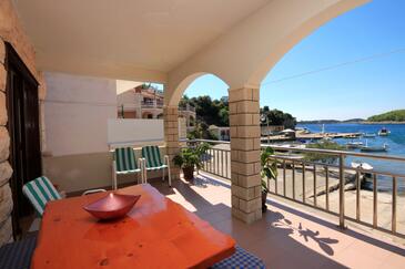 Ferienwohnung bietet Platz für 6 Gäste. Die Betten sind in Schlafzimmern, die es 3 gibt, innerhalb einer Gesamtfläche von 69m2, angeordnet. Die Gäste haben eine eigene Terrasse zur Verfügung, auf der sie in warmen Sommernächten genießen können. Das Apartment bietet Meerblick. Es ist erlaubt, Speisen auf dem Gemeinschafts-Grill vorzubereiten. In der Unterkunftseinheit besteht die Möglichkeit des Mitbringens von Haustieren gegen Aufpreis.