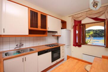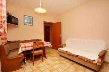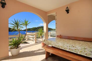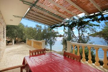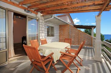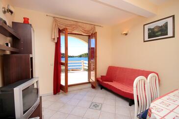 Ferienwohnung bietet Platz für 4 Gäste. Die Betten sind in Schlafzimmern, die es 2 gibt, innerhalb einer Gesamtfläche von 50m2, angeordnet. Die Gäste haben eine eigene Terrasse zur Verfügung, auf der sie in warmen Sommernächten genießen können. Das Apartment bietet Meerblick. Es ist erlaubt, Speisen auf dem Gemeinschafts-Grill vorzubereiten.