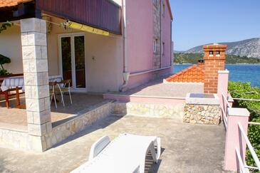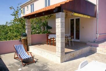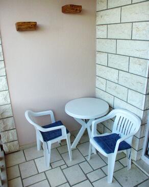 Ferienwohnung bietet Platz für 3 Gäste. Die Betten sind in Schlafzimmern, die es 1 gibt, innerhalb einer Gesamtfläche von 26m2, angeordnet. Die Gäste haben eine eigene Terrasse zur Verfügung, auf der sie in warmen Sommernächten genießen können. Das Apartment bietet Meerblick. Es ist erlaubt, Speisen auf dem Gemeinschafts-Grill vorzubereiten.
