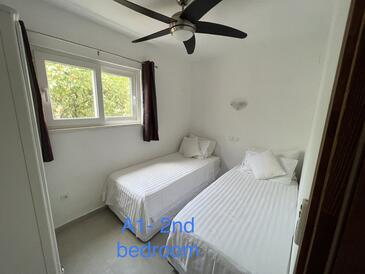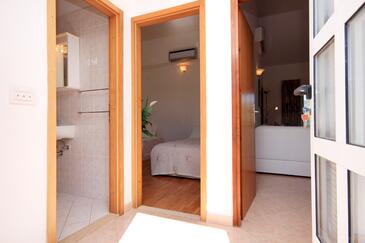 Ferienwohnung bietet Platz für 4 Gäste. Die Betten sind in Schlafzimmern, die es 2 gibt, innerhalb einer Gesamtfläche von 39m2, angeordnet. Die Gäste haben eine eigene Terrasse zur Verfügung, auf der sie in warmen Sommernächten genießen können. Es ist erlaubt, Speisen auf dem Gemeinschafts-Grill vorzubereiten.