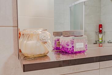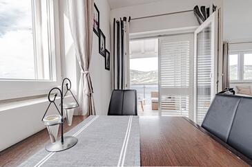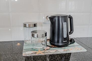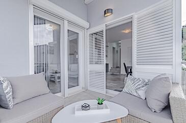 Ferienwohnung bietet Platz für 3 Gäste. Die Betten sind in Schlafzimmern, die es 1 gibt, und in Wohnzimmer, innerhalb einer Gesamtfläche von 43m2, angeordnet. Die Gäste haben eine eigene Terrasse zur Verfügung, auf der sie in warmen Sommernächten genießen können. Das Apartment bietet Meerblick. Es ist erlaubt, Speisen auf dem Gemeinschafts-Grill vorzubereiten.