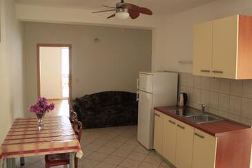 Ferienwohnung bietet Platz für 4 Gäste. Die Betten sind in Schlafzimmern, die es 2 gibt, innerhalb einer Gesamtfläche von 51m2, angeordnet. Die Gäste haben eine eigene Terrasse zur Verfügung, auf der sie in warmen Sommernächten genießen können. Das Apartment bietet Meerblick. Es ist erlaubt, Speisen auf dem Gemeinschafts-Grill vorzubereiten.