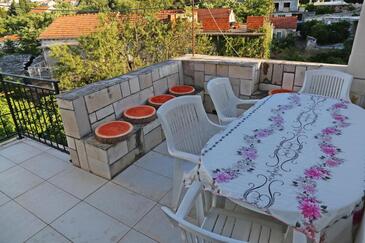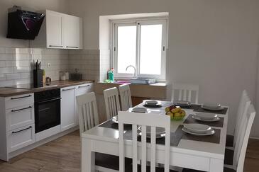 Haus bietet Platz für 8 Gäste. Die Betten sind in Schlafzimmern, die es 4 gibt, innerhalb einer Gesamtfläche von 102m2, angeordnet. Die Gäste haben eine eigene Terrasse zur Verfügung, auf der sie in warmen Sommernächten genießen können.