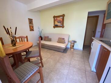 Ferienwohnung bietet Platz für 3 Gäste. Die Betten sind in Schlafzimmern, die es 1 gibt, und in Wohnzimmer, innerhalb einer Gesamtfläche von 26m2, angeordnet. Die Gäste haben eine eigene Terrasse zur Verfügung, auf der sie in warmen Sommernächten genießen können. Das Apartment bietet Meerblick. Es ist erlaubt, Speisen auf dem Gemeinschafts-Grill vorzubereiten. In der Unterkunftseinheit besteht die Möglichkeit des Mitbringens von Haustieren, und die Dienstleistung ist im Preis der Unterkunft enthalten. Durch die Terrasse der gebuchten Unterkunftseinheit gehen auch andere Gäste oder Vermieter.