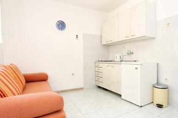 Ferienwohnung bietet Platz für 4 Gäste. Die Betten sind in Schlafzimmern, die es 1 gibt, und in Esszimmer, innerhalb einer Gesamtfläche von 36m2, angeordnet. Die Gäste haben eine eigene Terrasse zur Verfügung, auf der sie in warmen Sommernächten genießen können. Das Apartment bietet Meerblick. Es ist erlaubt, Speisen auf dem Gemeinschafts-Grill vorzubereiten. In der Unterkunftseinheit besteht die Möglichkeit des Mitbringens von Haustieren gegen Aufpreis.