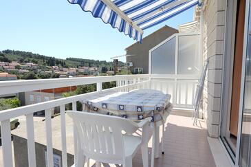 Ferienwohnung bietet Platz für 3 Gäste. Die Betten sind in Schlafzimmern, die es 1 gibt, und in Esszimmer, innerhalb einer Gesamtfläche von 35m2, angeordnet. Die Gäste haben einen eigenen Balkon zur Verfügung, auf der sie in warmen Sommernächten genießen können. Das Apartment bietet Meerblick. Es ist erlaubt, Speisen auf dem Gemeinschafts-Grill vorzubereiten.