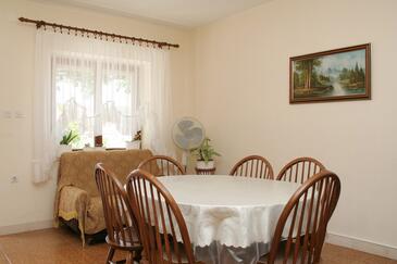Ferienwohnung bietet Platz für 5 Gäste. Die Betten sind in Schlafzimmern, die es 2 gibt, innerhalb einer Gesamtfläche von 64m2, angeordnet. Die Gäste haben eine eigene Terrasse zur Verfügung, auf der sie in warmen Sommernächten genießen können. Es ist erlaubt, Speisen auf dem Gemeinschafts-Grill vorzubereiten.