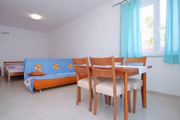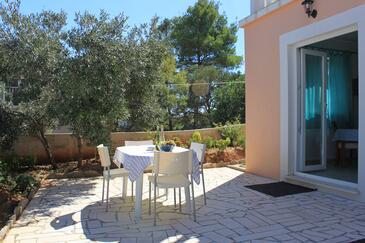 Ferienwohnung bietet Platz für 4 Gäste. Die Betten sind in Schlafzimmern, die es 2 gibt, innerhalb einer Gesamtfläche von 37m2, angeordnet. Die Gäste haben eine eigene Terrasse zur Verfügung, auf der sie in warmen Sommernächten genießen können. Das Apartment bietet Meerblick. Es ist erlaubt, Speisen auf dem Gemeinschafts-Grill vorzubereiten.